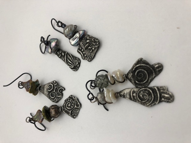 ARTISAN MADE TIN AND PEARL EARRINGS